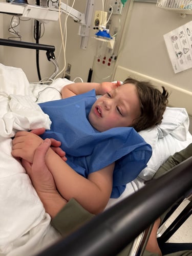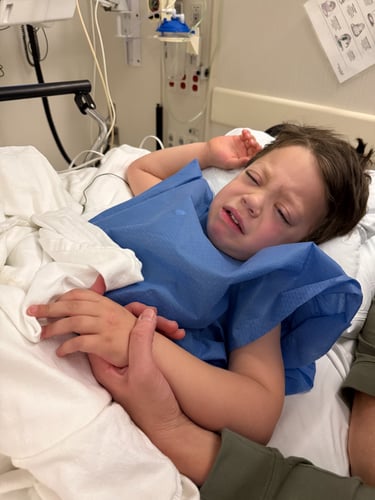 Gage was so good and so brave on our trip to Mayo this past week (if you missed the last update, find it here). Desirae and I mentioned several times how he is growing up and knowing what to expect. That doesn't mean that he was free of anxiety and fear - he wasn't. We were telling him, "You will just go to sleep, and then it will be over." When we talked about it, he started telling Desirae and me that he didn't like us for making him go to sleep. I noticed that when Gage gets scared, his bottom lip quivers -- it is like he is trying to contain the anxiety. I do the same. This past year, I have noticed that I bite my bottom lip because it starts to quiver as tears begin to well up. I don't like to see my boy feel that way for even a moment.
