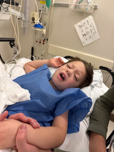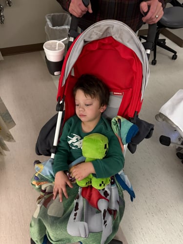 During all of this, I sent a message to Gage's team to let them know we would be late for our appointment. The response I received said, "Gage's doctor is aware that he will be late and wanted you to be sure that you have lunch before you get here - there are no worries on our end." We were only 45 minutes late in the end. Gage's oncologist went over the MRI with us - she read every line and explained it to us. In the end, she explained that there was no reason to change anything we have been doing. If things keep trending this way, there is a second medication that they might put Gage on (which was always an option), but we opted for the single drug because Gage is so little, and the risk of side effects increases if we add another medication. We are continually in awe of how God has directed our path and guided us to this specific doctor. She cares for Gage like she would her own child. She is continuously thinking not only about his current treatment but also about two or three steps down the road and the long-term effects of the decisions we make.