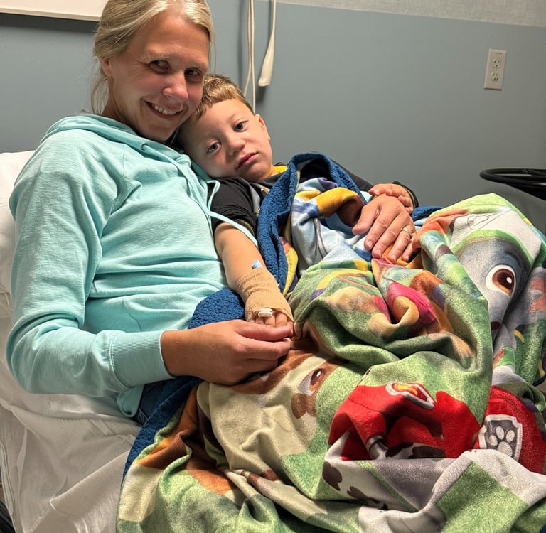 I say this because I know that no matter what happens when we visit Rochester, God is faithful and worthy of our praise. We know that God works all things for the good of those who love Him (Romans 8:28). The fact is, and I know this to be true, that we do not have to understand why things happen, but we do trust that the Almighty is perfectly wise and knows what He is doing. On Tuesday morning, we woke up really early and headed to Mayo, and Gage started the day with some heart tests. Gage was brave and handled everything so well! They wanted to look at his heart function, but also the size of his aorta, which was slightly enlarged on previous scans. It is difficult to determine whether this is due to the ECD or simply a characteristic of Gage, but it is something that needs to be closely monitored. The results of that test showed that there was no change in the size of his aorta, but his heart was working perfectly. I am not sure what I was hoping that test would show. I don't want the ECD to be affecting his heart, but at the same time, I hoped that God would have remedied this in one way or another.